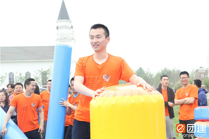 最后是圆柱大战,每个人抱着比腿还粗的圆柱在气垫上混战一团,十分激烈。